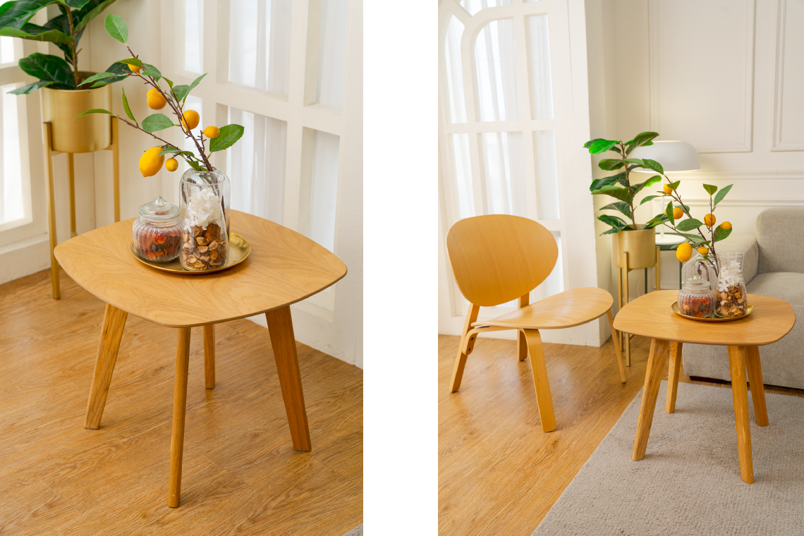 โต๊ะข้างรุ่น L'arbre-55 โต๊ะตัวนี้มาในคอนเซ็ปต์ไม้ทั้งตัว ดีไซนหน้าท็อปสี่เหลี่ยมขอบมนทั้งสี่ด้าน ขาไม้ทรงสูงมีฐานไม้รองน้ำหนักด้านใต้ตัวท็อป โต๊ะรุ่นนี้เป็นไม้ 2 ชนิด ท็อปโต๊ะเราใช้เป็นไม้ MDF พื้นผิวเรียบเนียนไม่มีเสี้ยน ส่วนตัวขาโต๊ะเราเลือกใช้เป็นไม้บีช เคลือบกันน้ำ จะเลือกใช้เป็นโต๊ะกลางหรือโต๊ะข้างก็ดูเหมาะไม่แพ้กัน