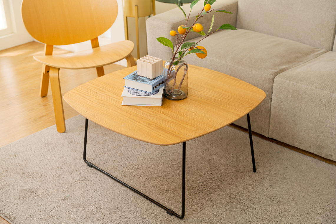 โต๊ะกลางรุ่น Stiel โต๊ะกลางรับแขก สไตล์ โมเดิร์น ดีไซนหน้าท็อปไม้สี่เหลี่ยมขอบมนทั้งสี่ด้าน ผิวตัวไม้ MDF เรียบเนียน มีพื้นที่กว้างวางของรับน้ำหนักได้ถึง 80 กิโล ขาโต๊ะเป็นโครงเหล็กสีดำได้กลิ่นอายความลอฟท์ ขาทั้งสองด้านดีไซน์แตกต่างกันช่วยทำให้โต๊ะตัวนี้ดูทันสมัยมากขึ้น