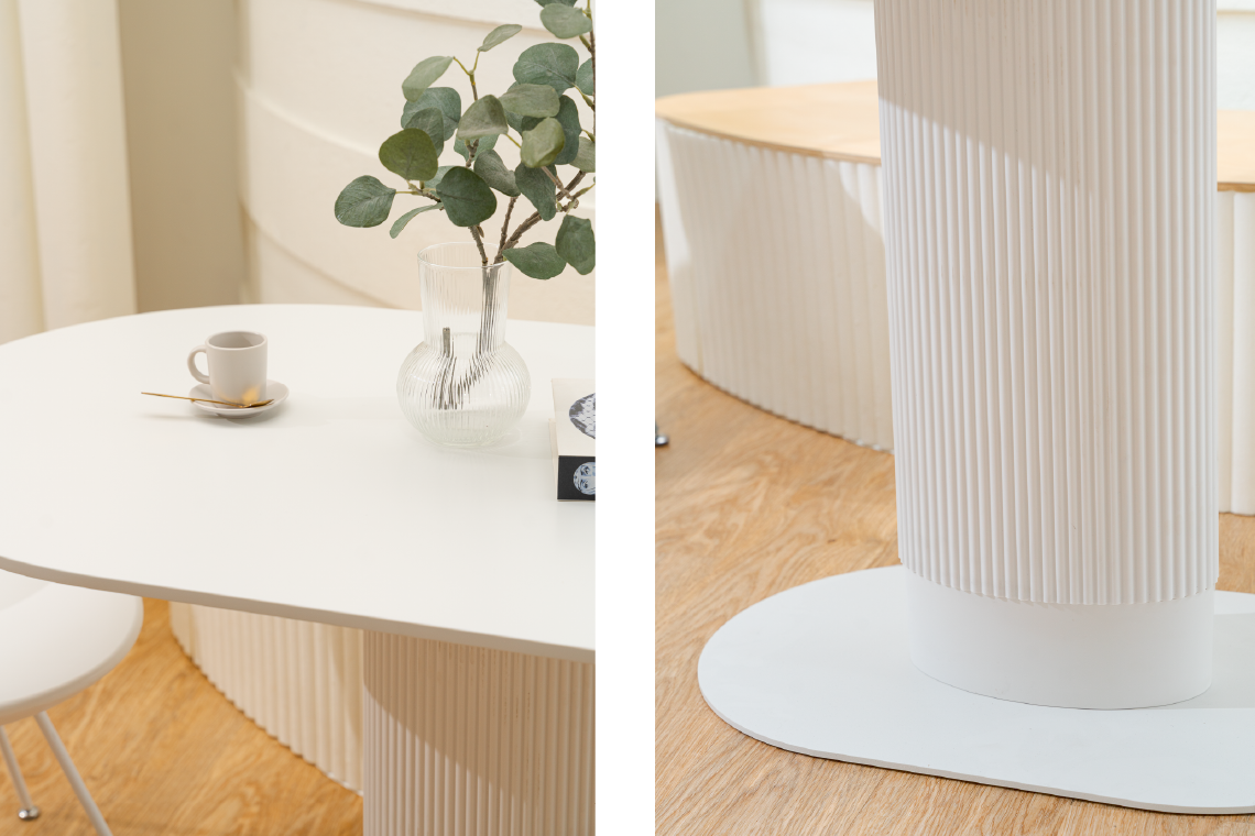 โต๊ะทานข้าวรุ่น Henry ต้องเกริ่นไว้ก่อนเลยว่าโต๊ะตัวกำลังฮอตสุดๆ เข้ามากี่ตัวๆก็หมดไม่เคยเหลือ ด้วยดีไซน์ที่มีความเรียบง่ายสไตล์มินิมอลผสมกับความเป็นโมเดิร์น ทำให้โต๊ะดูมีความสวยและแพงในเวลาเดียวกัน ท็อปโต๊ะเป็นทรงรียาว มีพื้นที่วางของเยอะมาก วัสดุทำจากไม้ MDF แต่พิเศษตรงที่เราทำการปิดผิวด้วย เมลามีน ทำให้เวลาเราจับ หรือ สัมผัสจะดูเรียบเนียนเป็นพิเศษ ตัวขาทำด้วยพลาสติก ABS ซึ่งเป็นพลาสติกชนิดพิเศษที่มีจุดเด่นเรื่องความแข็งแรงและ ยืดยุ่นสูงมากกว่าพลาสติกชนิดอื่นๆ สามารถนั่งได้ 4- 6 คน เลยทีเดียว!